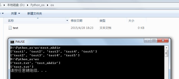 os.chdir(".\\test_mkdir") # . 表示本级目录; .. 表示上级目录