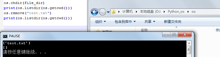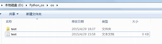可先在 D:\ 下创建文件夹 Python_os , 再在其下创建文件夹 os, 再在其下创建 test.txt;之后的示例会在该文件夹下操作