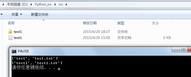 os.rmdir("test1") # 删除 test1 文件夹(空文件夹)