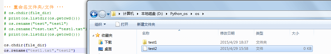 os.rename("test.txt","test1.txt") # 重命名,注意需要带扩展名