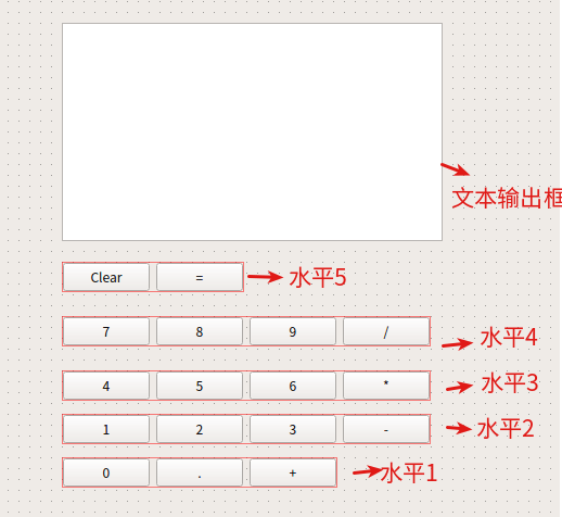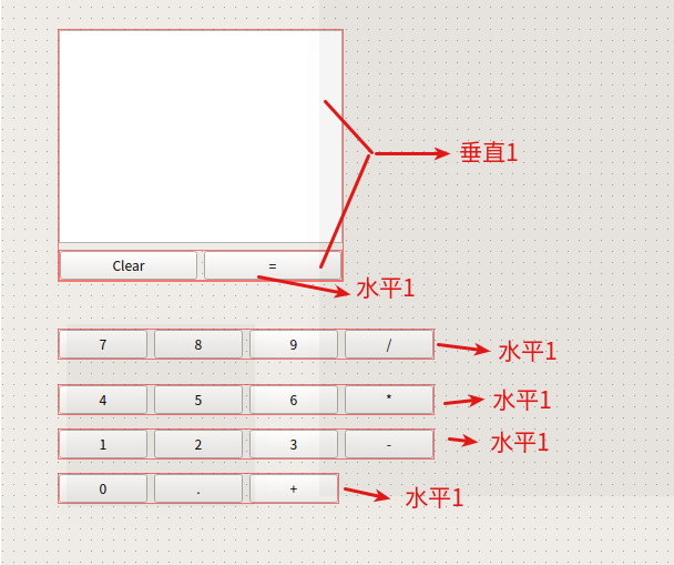 按键Clear 按键= 为水平布局,水平布局后整体标记为水平5