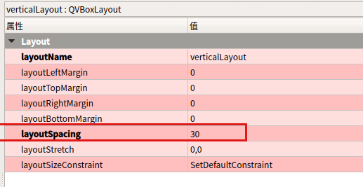 最后在对象查看器中选择垂直1布局。改变layoutSpacing的值即可。