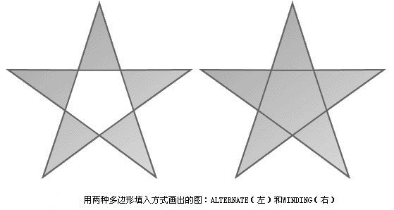 1. 在通常情况下,两种模式仅在绘制复杂、重叠的多边形才会有不同的显示(例如五角星)。