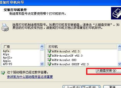 “从磁盘安装”找到下好的驱动文件夹“确定”->“选择正确的打印机驱动”->下一步 完成安装即可