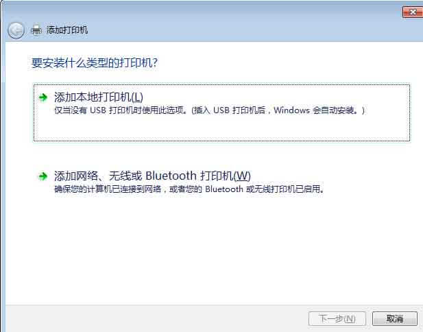 1、添加本地打印机-〉“下一步”