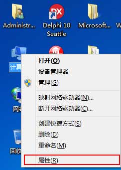 1:找到“计算机”单击右键,选择属性,如下图所示: