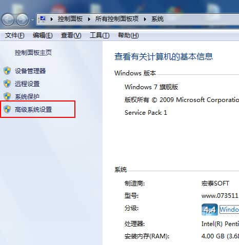 2:在弹出的窗口中,选择左侧的“高级系统设置”如图所示: