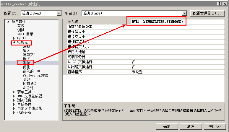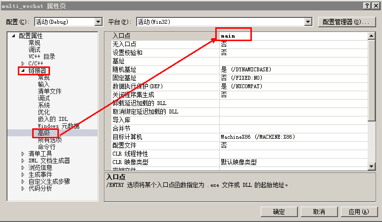 ③入口函数设置为main