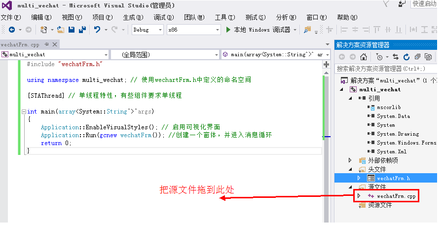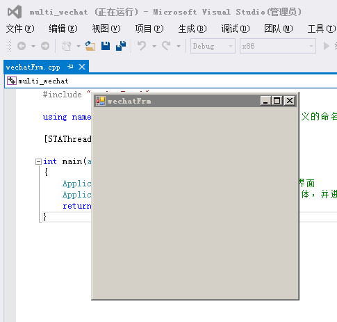 Application::Run(gcnew mwechatFrm()); //创建一个窗体,并进入消息循环