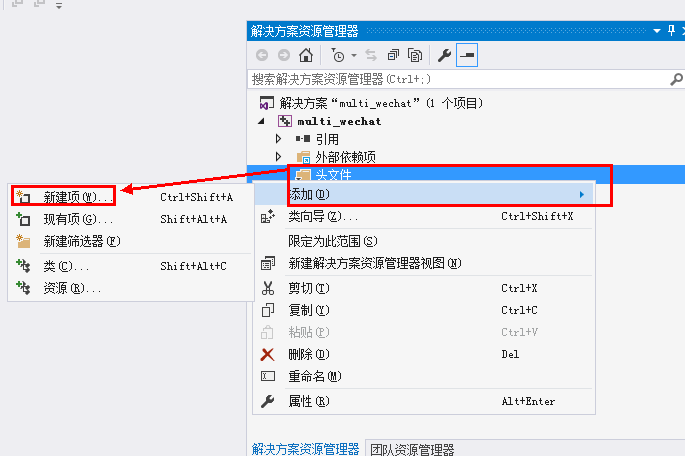 ①右键点击头文件,添加新建项