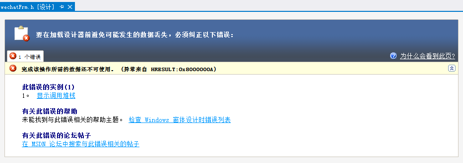 注意,在第三步结果这里,可能会(请注意!是可能,反正在我的电脑上发生了)报错:若要在加载设计器前避免可能发生的数据丢失,必须纠正以下错误。