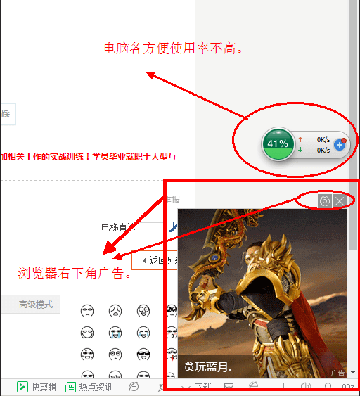 原因: 浏览器右下广告导至 如图:(如果你开启了多个网页标签,可能在另一个标签下)