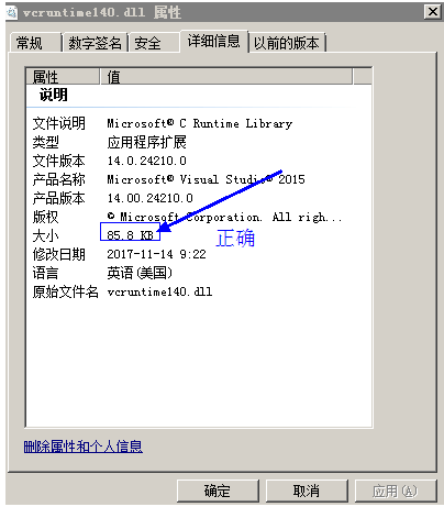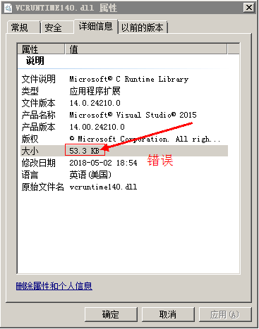 使用Pyinstaller -F D:\py\hello.py --upx-dir upx391w(-F 生成单个exe文件)移植到别的电脑上运行,又是相同的问题;根据错误信息所指,找到vcruntime140.dll查看,文件大小又不对了。