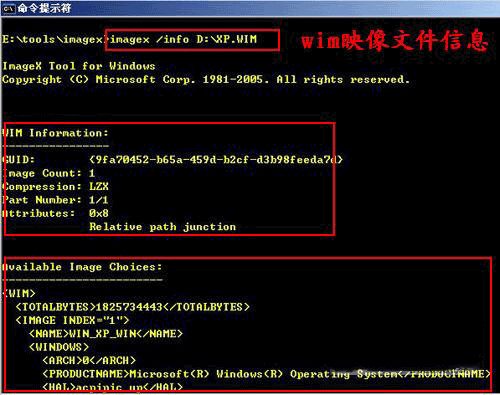 命令:IMAGEX /info d:\system.wim >f:list.txt