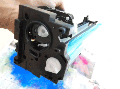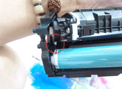 第一步:拿起硒鼓的左边,有弹簧的那边。也是主要处理的一边。