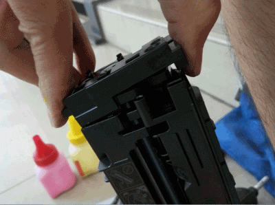 前言,该原装硒鼓2边的盖是用胶水胶起来的,拆起来比效麻烦(风险大),而且加粉也麻烦,所以建议不要用该原装硒鼓加粉,直接换代用硒鼓。