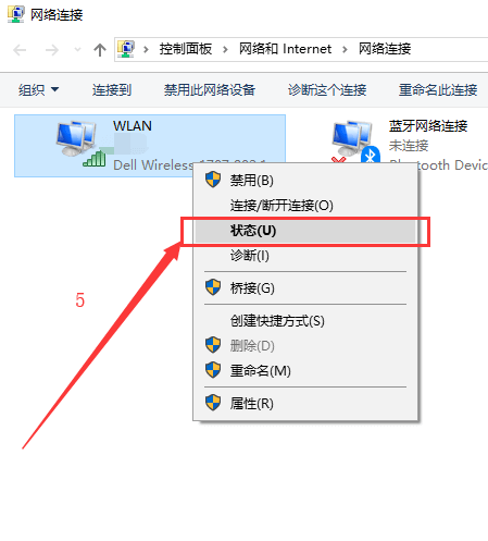 3:右键 WLAN -> 状态。