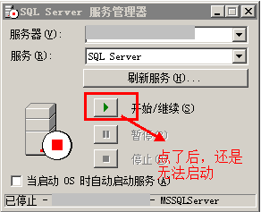 sql server2000电脑右下角显示停止,点击开始没反应 如图: