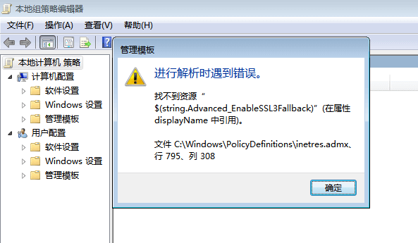 WIN7 IE8更新到IE11,打开组策略发现报错,经过查找微软件官方网站和分析得出: