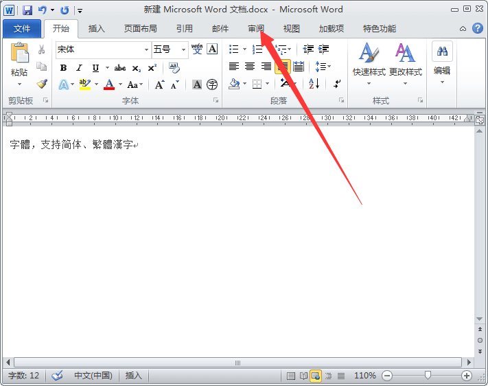 然后点击word上方功能区域的“审阅”,打开审阅的功能选项卡,在里面进行相关的操作,即可到达简体字和繁体字的相互转化。