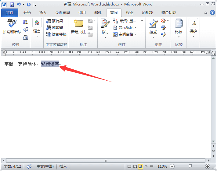 我们还可以将需要转换成简体或繁体的文字选中,用鼠标选择中转换的文字即可。