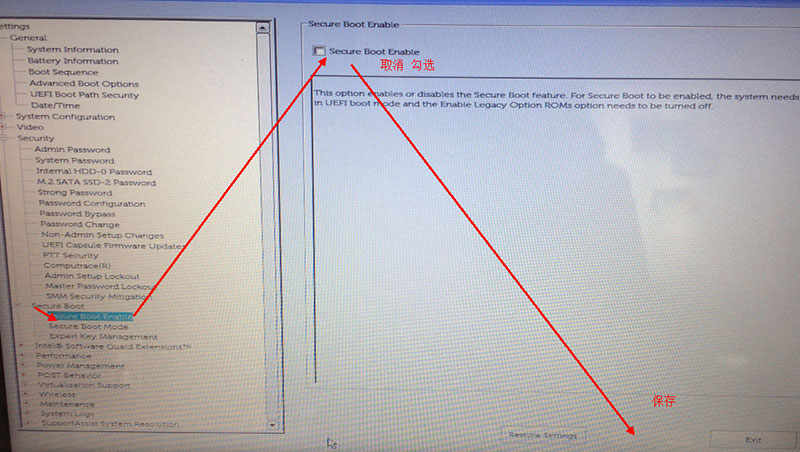 2. 关闭Secure Boot