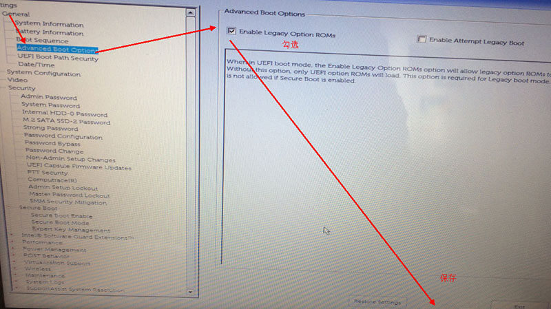 3. 开启Legacy Option ROMS