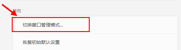 4、在最下面找到 其它 -> 切换窗口管理模式... 并打开