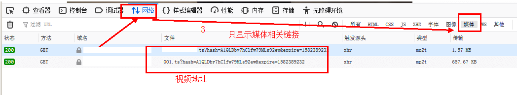 右键 -> "查看元素" -> 下面选择"网络" -> "媒体" -> 就可以看到.ts文件的地址了