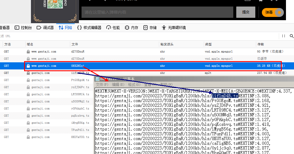 1、可以直接找到括展名为.m3u8文件(当然这种情况现在很少了),或自己想办法找到m3u8文件,m3u8文件里面存放着.ts的地址 如图: