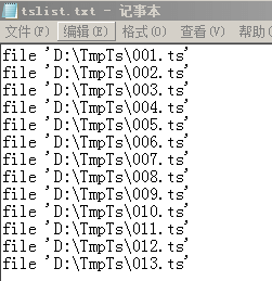 命令中tslist.txt的文件格式 如下图: