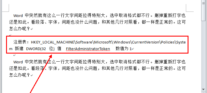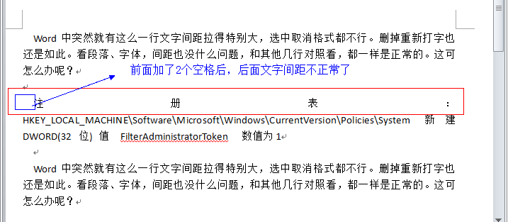 Word中突然就有这么一行文字间距拉得特别大,选中取消格式都不行。删掉重新打字也还是如此。看段落、字体,间距也没什么问题,和其他几行对照看,都一样是正常的。这可怎么办呢?