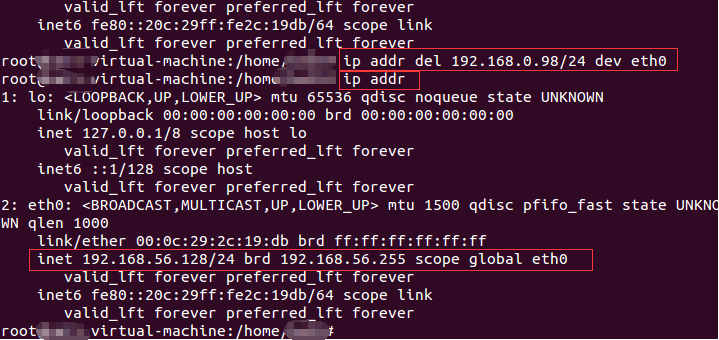 例子:ip addr del 192.168.0.98/24 dev eth0
