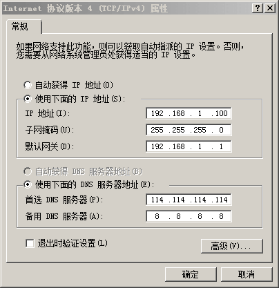netsh interface ip set dns name="本地连接" source=static addr=114.114.114.114 register=PRIMARY