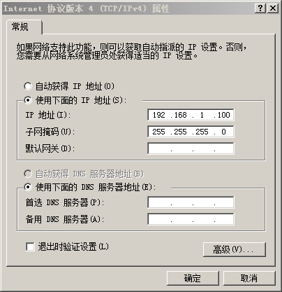 netsh interface ip set address "本地连接" static 192.168.1.100 255.255.255.0 192.168.1.1 0