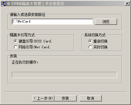 中孚隔离卡提供了2种隔离卡引导方式 硬盘引导、网络引导。不要被它的名字迷惑其实就是2种用来兼容电脑的引导方式。如图: