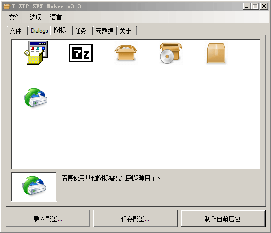 并把你要生成exe所需的图标复制到7-Zip SFX Maker安装目录下的Resources目录中。
