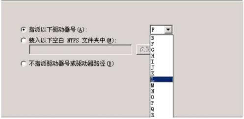 然后Windows提示指派驱动器号,可以由Windwos指定也可手动分配,本例中我选择了“L”作为RAID-5卷的驱动器号,如图1-13所示。