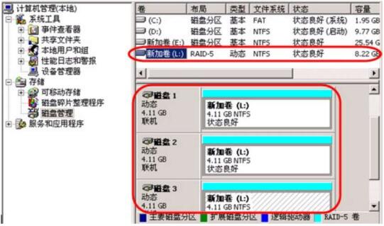 图1-14 创建好的RAID5卷“L”