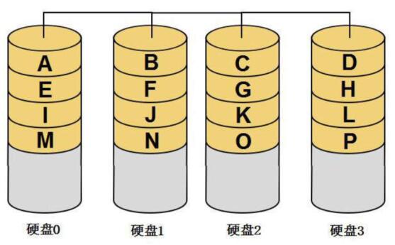 JBOD上的数据组织也很简单,它从第一个成员盘开始存储,当第一个成员盘的存储空间用完后,再依次从后面的成员盘开始存储数据。