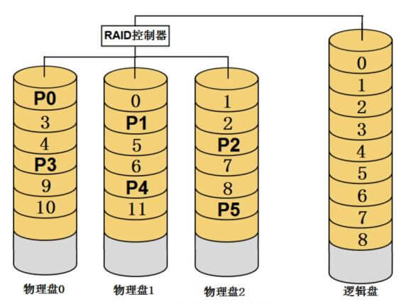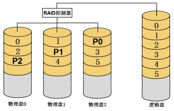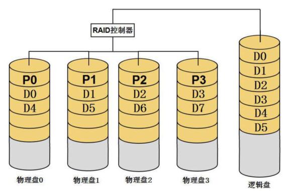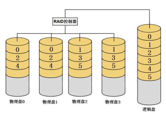多块物理盘经RAID卡或者软RAID程序配置为RAID之后,多块物理盘就组成了一块新的硬盘,这个硬盘是由RAID控制部或RAID程序虚拟出来的,称为逻辑盘,也称作虚拟盘或容器。