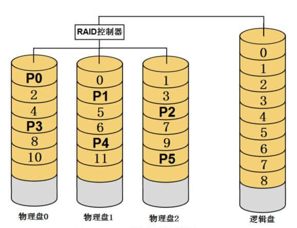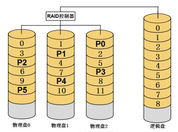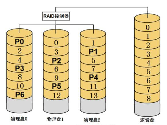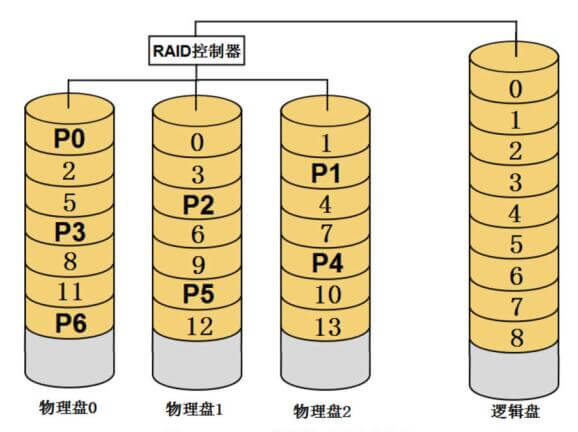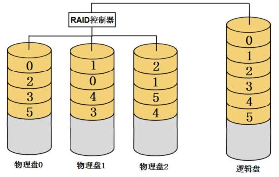 多块物理盘在创建RAID时,配置程序会为这些物理盘安排一个先后顺序,RAID创建完成之后,这个顺序就被确定下来,不会再改变,这就是RAID的盘序。