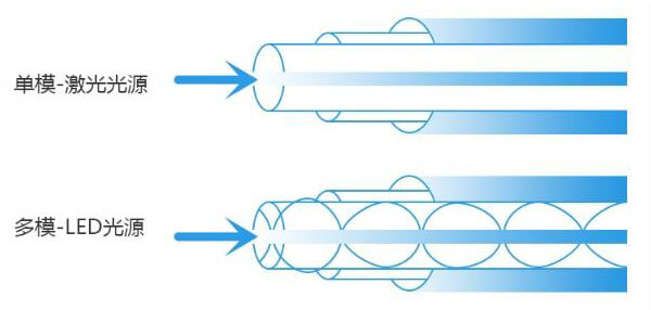 单模光纤:以激光器作为光源。