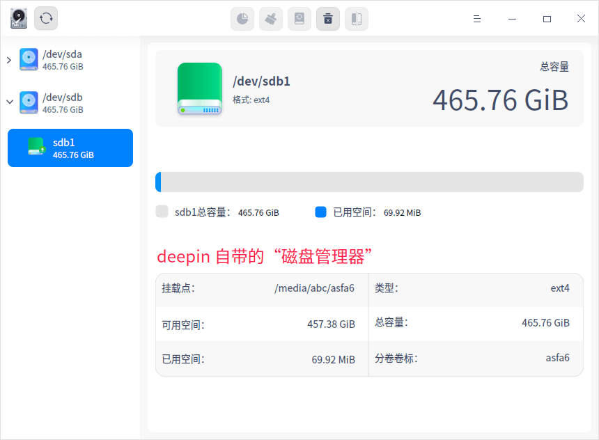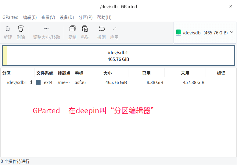 deepin linux的“磁盘管理器”,“GParted分区编辑器”如下图: