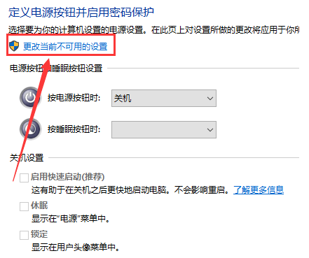 4、找到蓝色的“更改当前不可以的设置”点击。