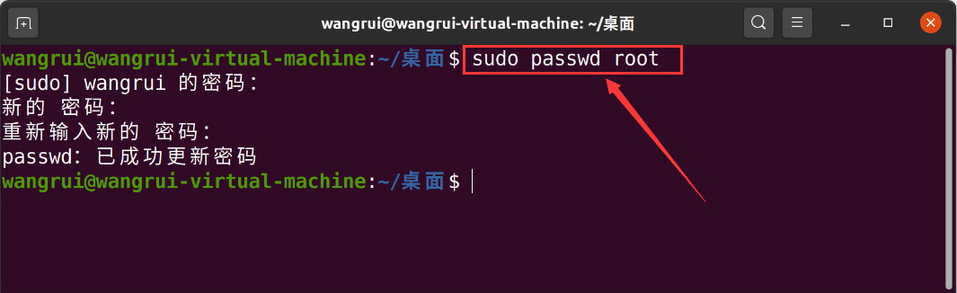 然后输入设置的密码,输入两次,这样就完成了设置root用户密码了(注意Linux系统下密码是没有回显的)
