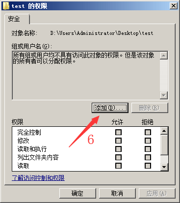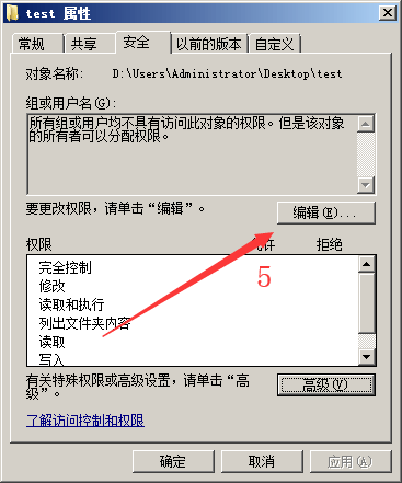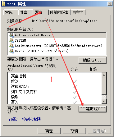 右键点击“test”属性->“安全”->“高级”。