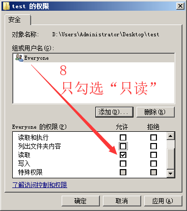 ->“everyone”允许权限只勾取“只读”。