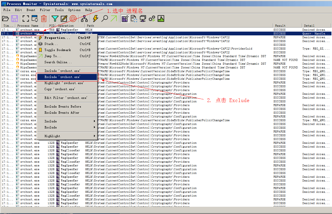 1、运行“Procmon Monitor”,只选择监视注册表。