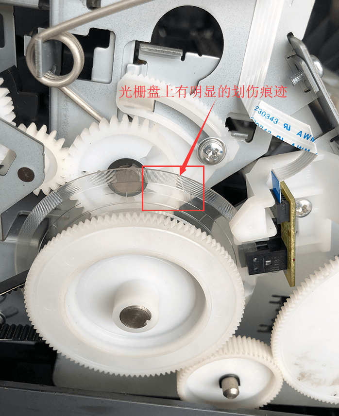 2、检查光栅条和光栅盘,发现问题。如图: